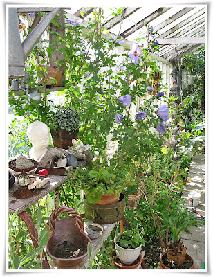 Det har bara regnat och regnat men plötsligt lyste solen på oss. Tänk vad glad man kan bli av lite sol. Kameran åkte fram och ute i trädgården. I växthuset är det som en djungel.